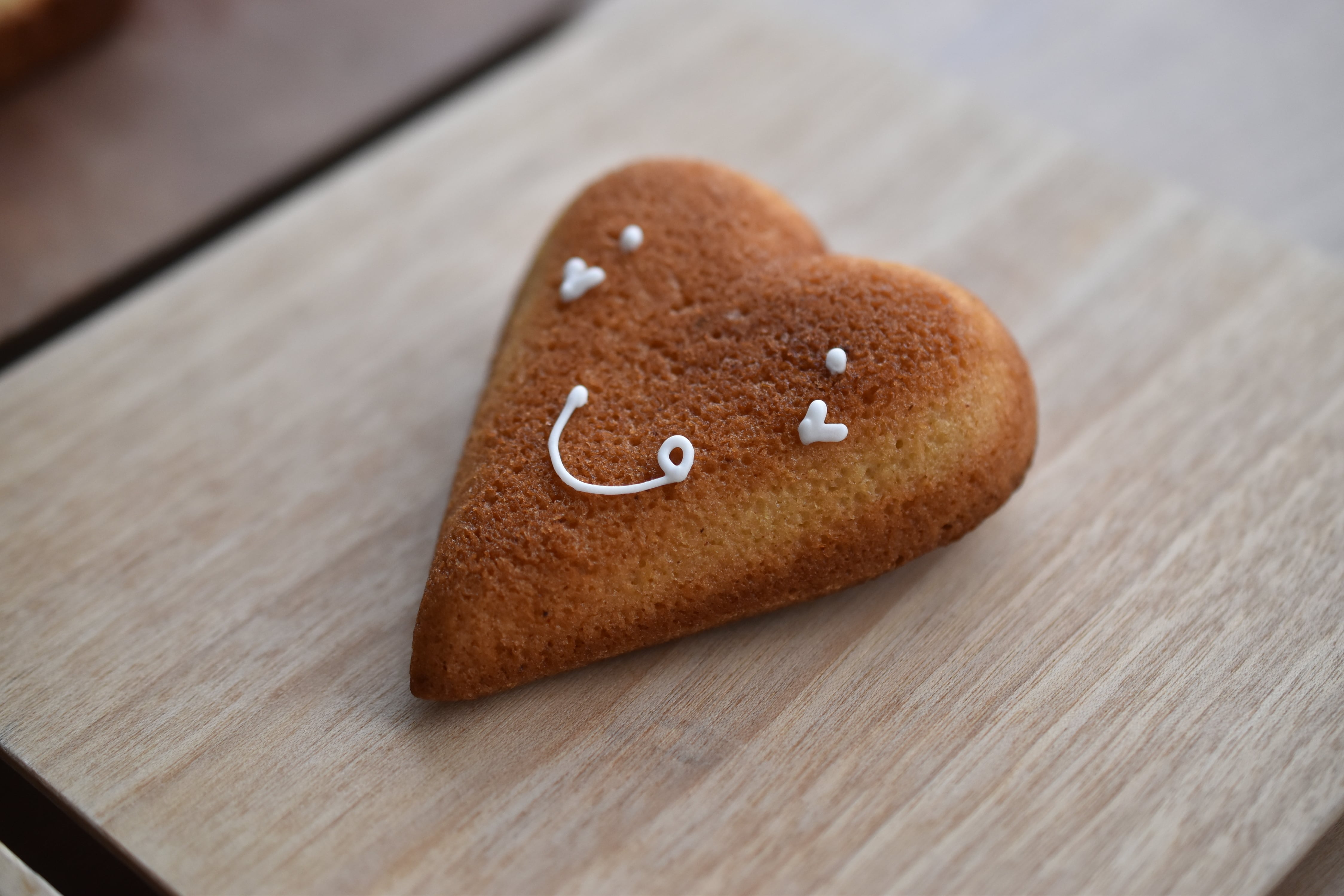 愛らしい表情のハート形のフィナンシェ。