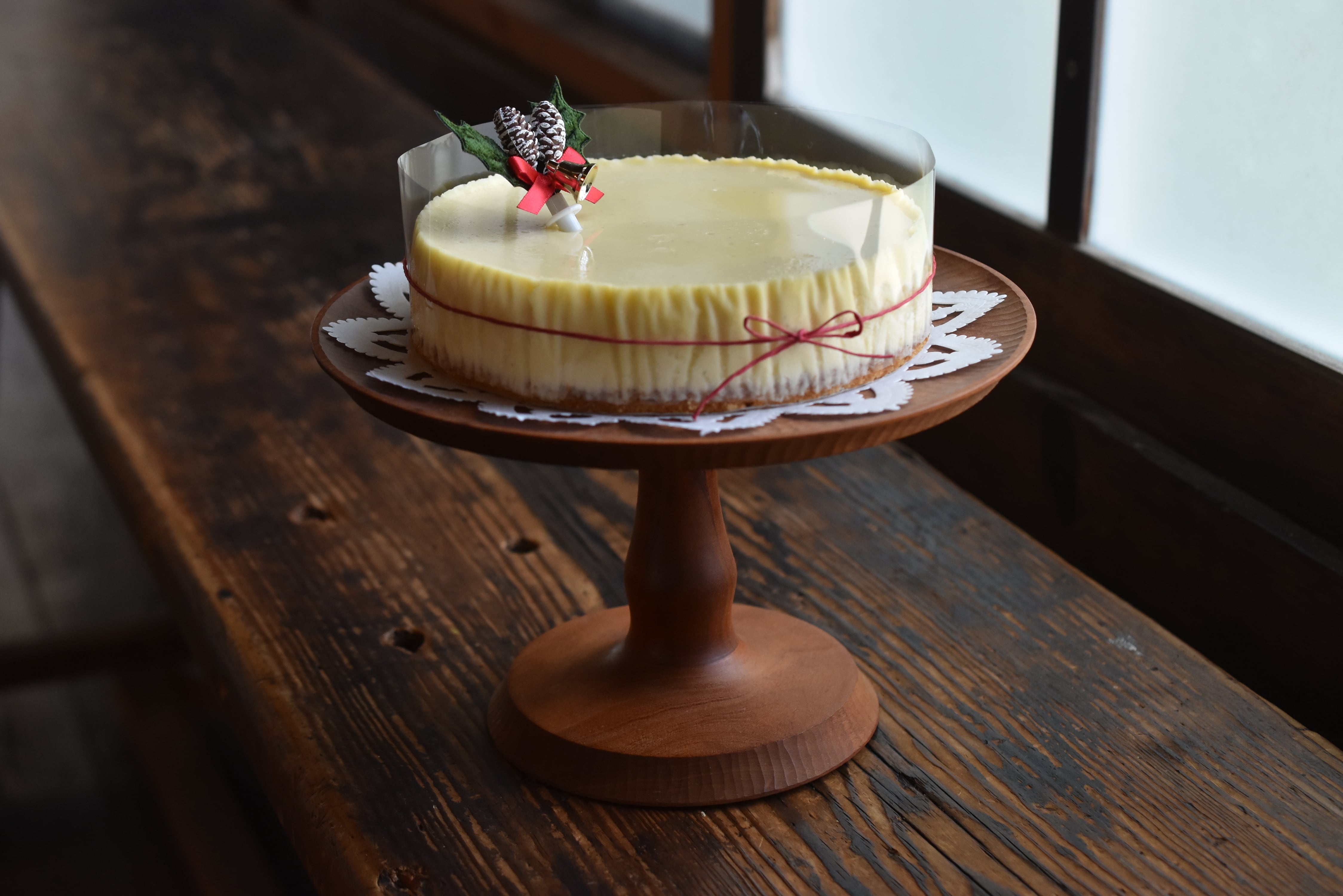 柊を飾り、クリスマス仕様のチーズケーキ。