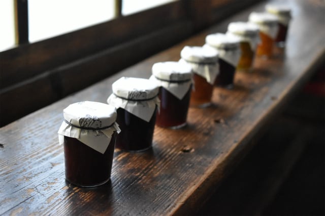 patisserie MiAのコンフィチュールは全てひとつひとつお店のキッチンで手作りしています。地元の農家さんから丹精込めて作られた旬の果物や野菜を分けていただけることに感謝して、香料やペクチン、保存料など添加物は一切使用せずに自然の恵みを生かし、スパイスやハーブなどを加えることでより味わいや風味が豊かになりますように。