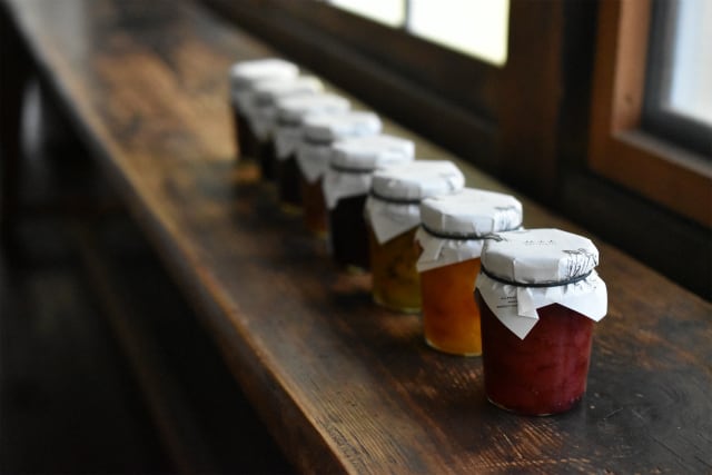 patisserie MiAのコンフィチュールは全てひとつひとつお店のキッチンで手作りしています。地元の農家さんから丹精込めて作られた旬の果物や野菜を分けていただけることに感謝して、香料やペクチン、保存料など添加物は一切使用せずに自然の恵みを生かし、スパイスやハーブなどを加えることでより味わいや風味が豊かになりますように。