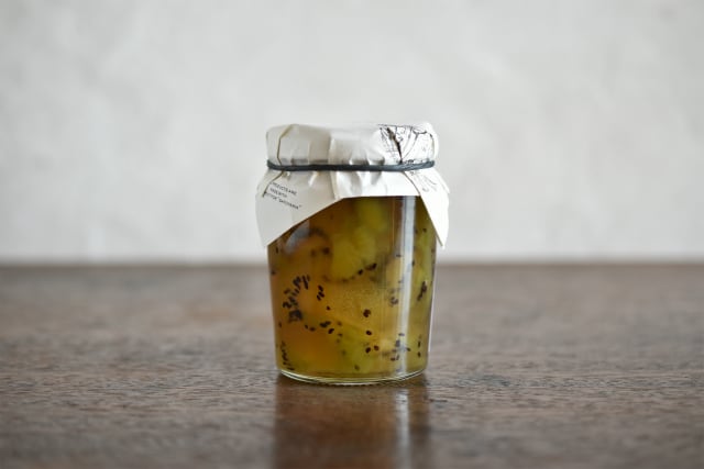 patisserie MiAのコンフィチュールは全てひとつひとつお店のキッチンで手作りしています。地元の農家さんから丹精込めて作られた旬の果物や野菜を分けていただけることに感謝して、香料やペクチン、保存料など添加物は一切使用せずに自然の恵みを生かし、スパイスやハーブなどを加えることでより味わいや風味が豊かになりますように。